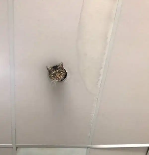 Недавно мамина подруга была в приюте для животных, и у них там один кот живет в потолке