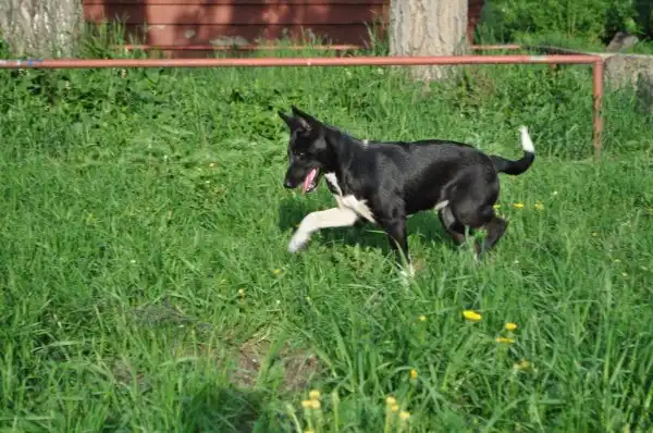 У собаки есть кровь овчарки и лабрадора, размер выше среднего.