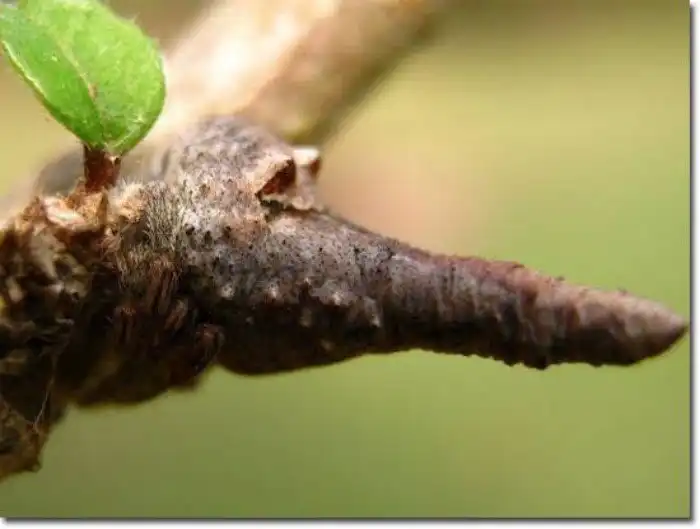 Заметить этого паука на дереве практически невозможно. Высокий «сучок» — это у него живот. Под ним, приглядевшись, можно заметить лапки, и между ними и голову.
