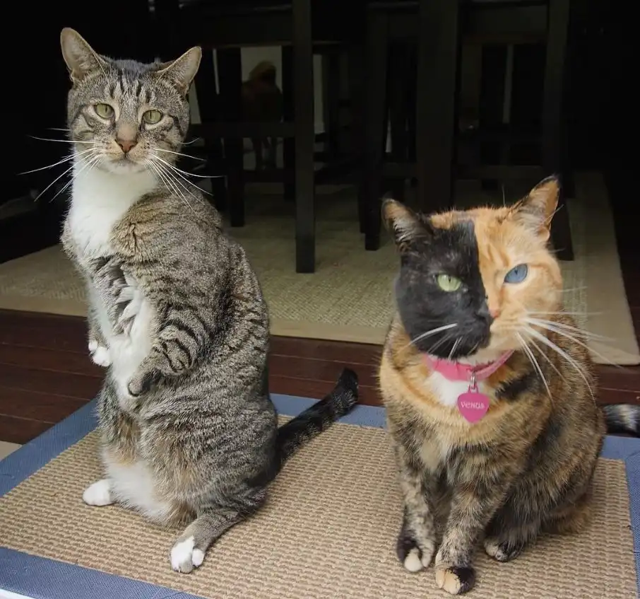 Бонус: у знаменитой Венеры, кошки с двумя лицами, появился необычный друг — котик-кенгуру по кличке Ру.