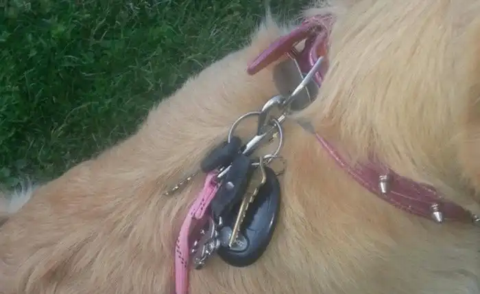 Не хватает карманов для тяжелой связки ключей на прогулке? Прицепите их карабином к ошейнику пса. Главное теперь — не потерять пса.