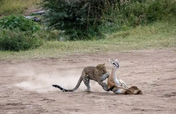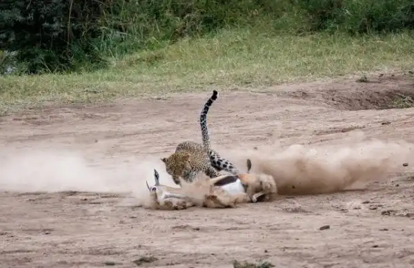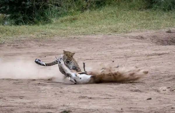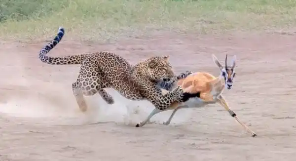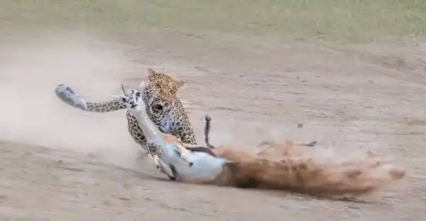 Двухсекундная атака: удивительные кадры охоты самки леопарда на газель