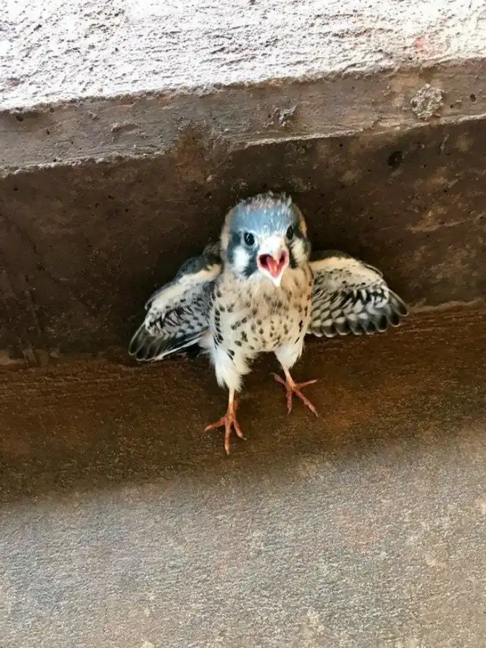 22. «Сегодня на работе нашёл детёныша ястреба»