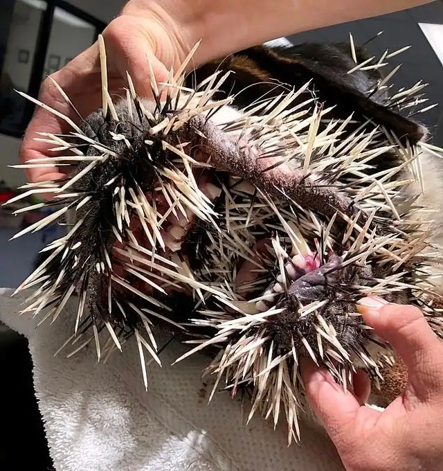 Неприятная встреча собаки с дикобразом