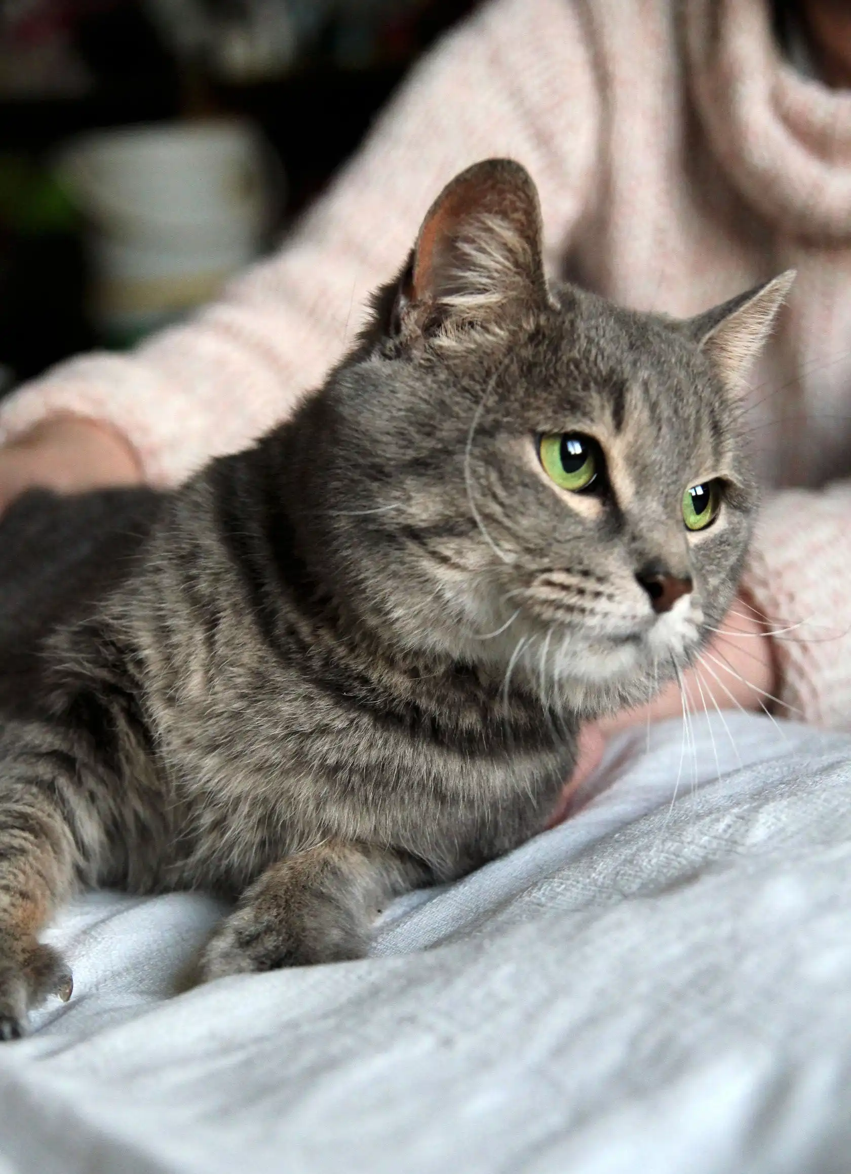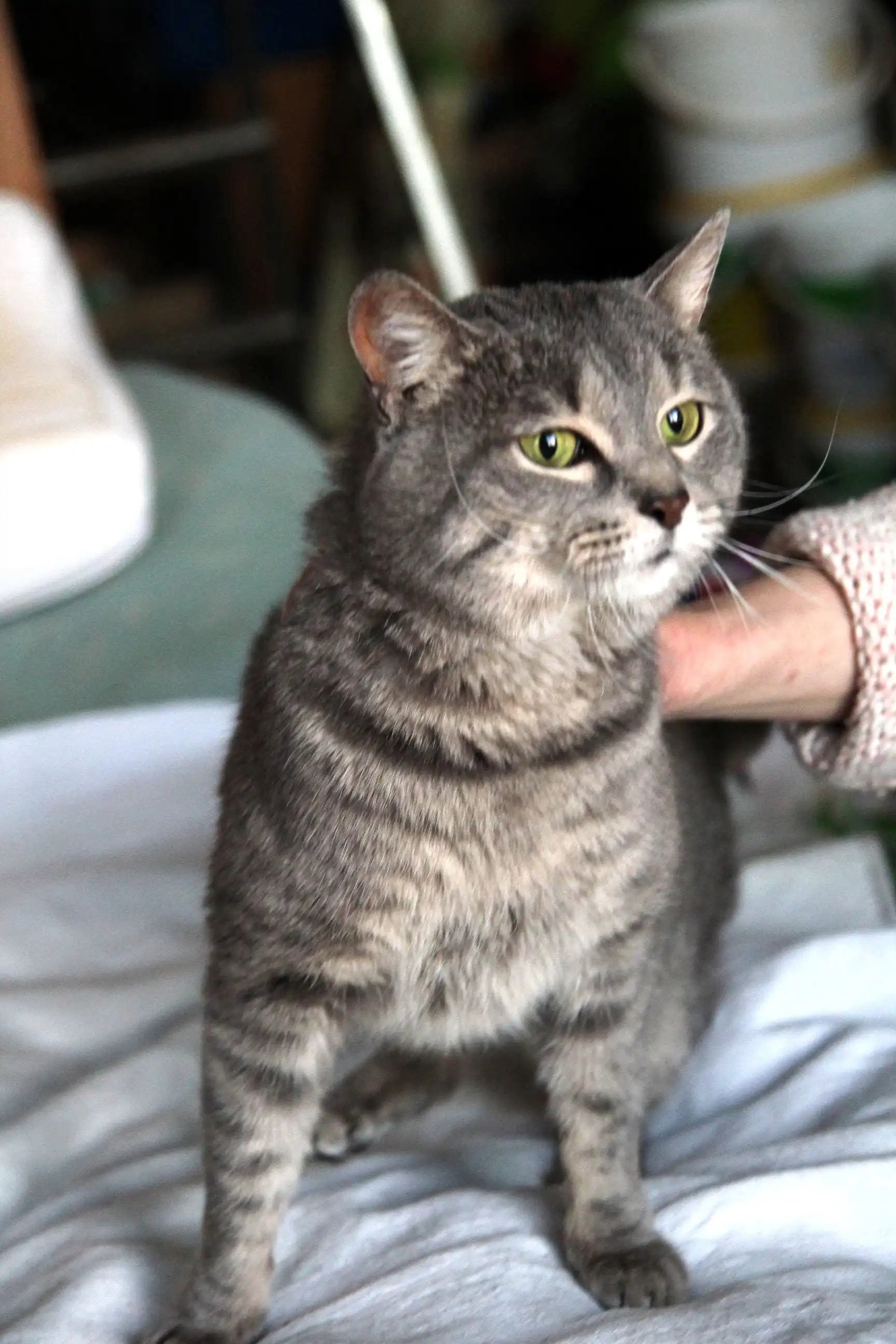 Кот Кирилл, окрас голубой табби, возраст примерно два года. Характер изменчивый, может быть очень ласковым, когда настроение хорошее. Когда настроение меняется лучше его не трогать. Интеллектуал. Питается готовыми кормами, нуждается в большом лотке с прочным бортиком, ибо умеет расстегивать и снимать бортик. Кастрирован.