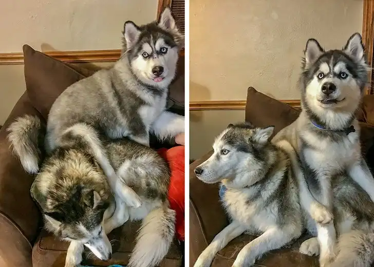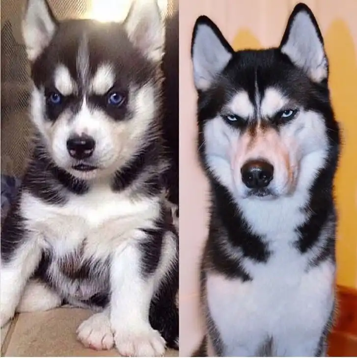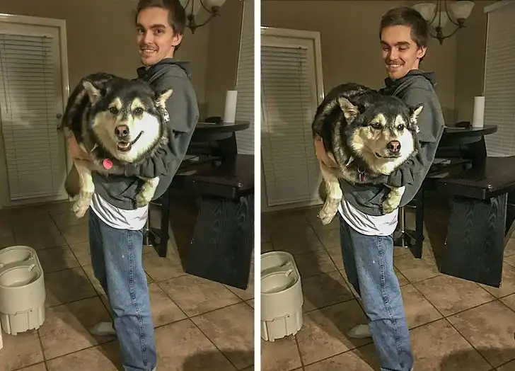 20. «Хаски моего друга до и после того, как я назвал его толстым»