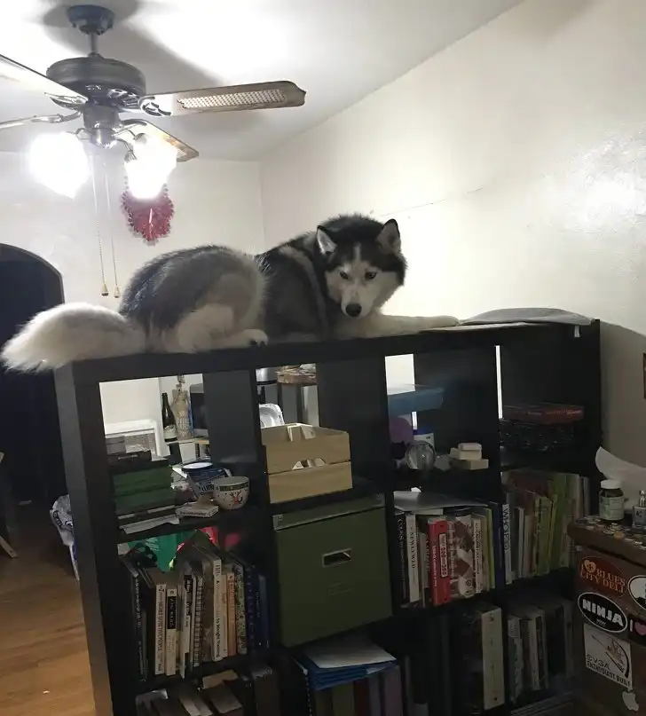 13. Книжная полка — самое удобное местечко, если ты хаски