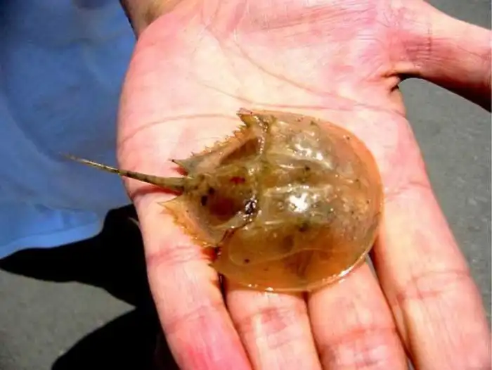 Стоит отметить, что у мечехвостов голубая кровь. Это очень интересно, ведь на вид выглядит действительно инопланетно. На самом деле такой цвет является результатом большого процента меди в организме животного.