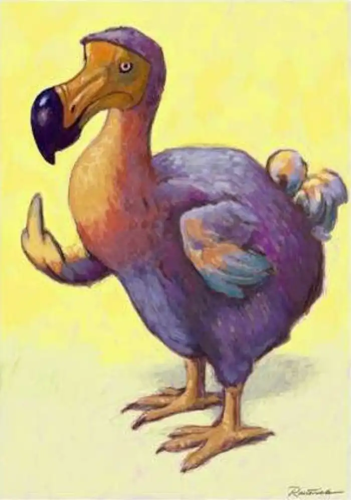 Стоит отметить, что, помимо дронта, в тех краях повымирало огромное количество уникальных существ. Например, рыжий мавриканский пастушок, маврикийский чубатый попугай, маврикийский синий голубь, маскаренская лысуха, маврикийская утка и маврикийская кваква. Из рептилий вымиранием решили заняться гигантские сухопутные черепахи, множество ящериц, а также змей. Не знаю как вы, а я в AHUE от такого расклада.