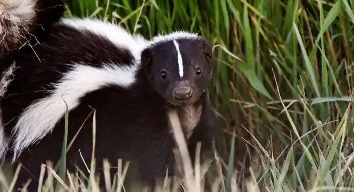 Данное семейство включает 4 рода и 12 видов, и обитают они в Америках и на островах Индонезии, ну, а дальше брат-Медоед не пускает. Самые большие скунсы – свинорылые. Весят до 4,5 кг. Самые маленькие – пятнистые. Не тяжелее 1 кг. Внешне они все с разной степенью успешности мимикрируют под Большого брата Медоеда и являются черными зверями с белыми контрастными полосами или пятнами на спине, которые прямо кричат из далека: НЕ ТРОЖЬ МЕНЯ, ПРОТУХНЕШЬ!