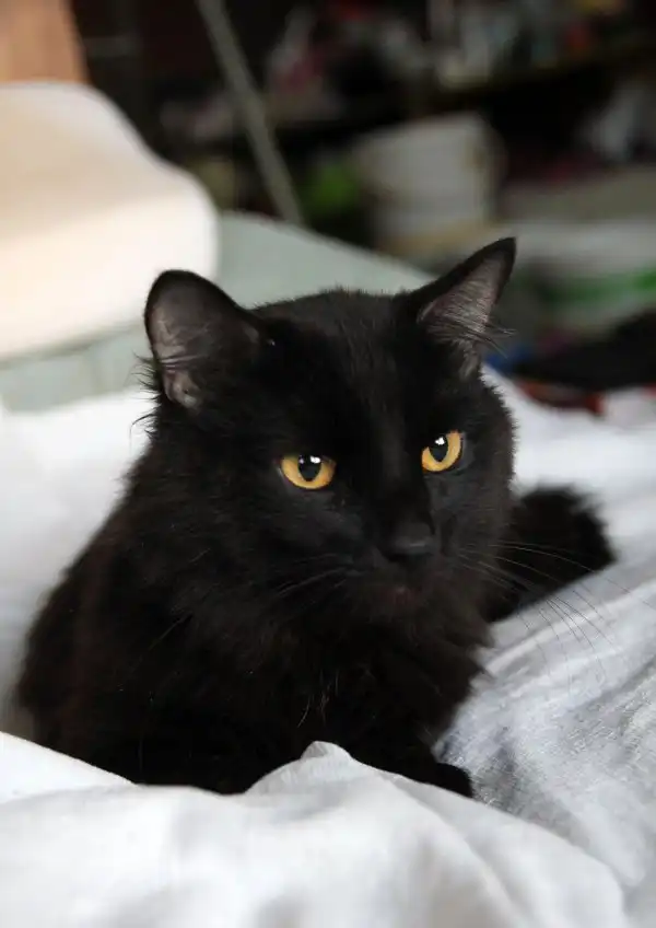 Кот Олег, черный полудлинношерстный, возраст примерно два года. Очень приятный в общении, ласковый, умный кот. Домашний, потерял свою хозяйку. Питается готовыми кормами, пользуется лотком, кастрирован.
