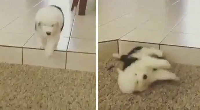 5. Это Уинстон. Он не заметил ступеньку. Похоже, он будет падать всю жизнь. 13/10. И помогите ему кто-нибудь!