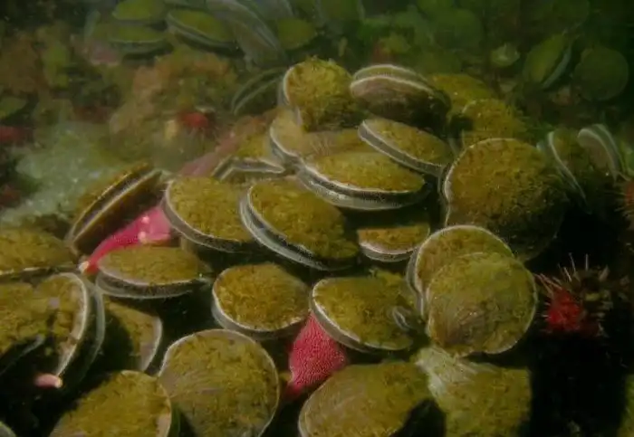 Раковина антарктического гребешка может вырасти до 7 сантиметров в ширину и имеет почти круглую форму. Два пурпурно-красных клапана тонкие как бумага.