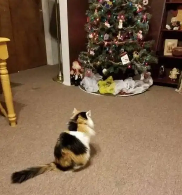 Все то, что не может быть помечено и уничтожено, придется созерцать. Этот кот любит елки, но терпеть не может пакеты