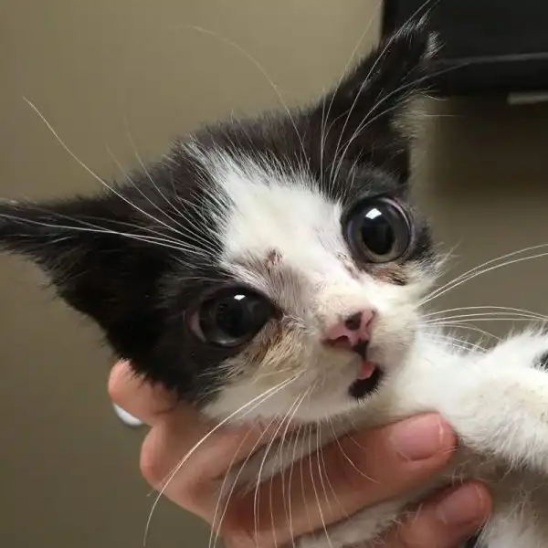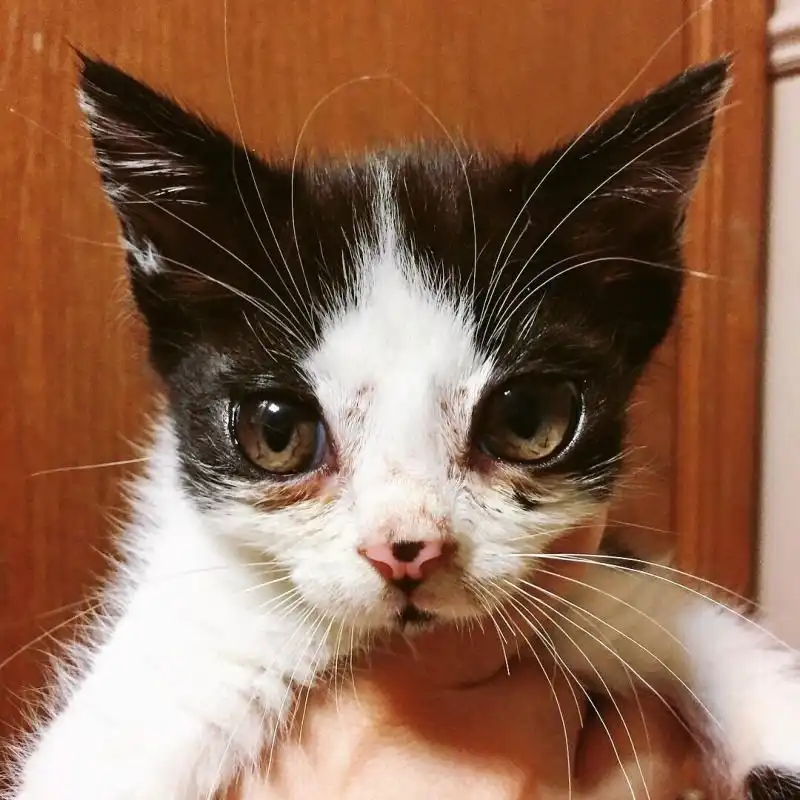 Когда молодому ветеринару принесли крошечную кошку-подкидыша, то ее умилили огромные глаза котенка, и она, назвав ее Порг (милота из “Звездных войн”), забрала животное домой. Прошло несколько дней и девушка поняла, что котенок родился с редкой генетической патологией – синдромом Элерса – Данлоса. Это значит, что кожа Порг очень чувствительна и плохо заживает, суставы слабые и из-за заболевания развилось смещение хрусталика.