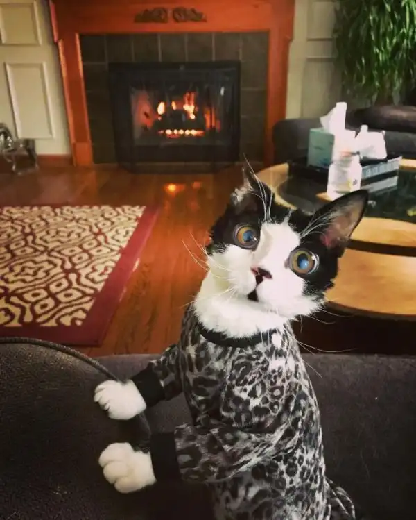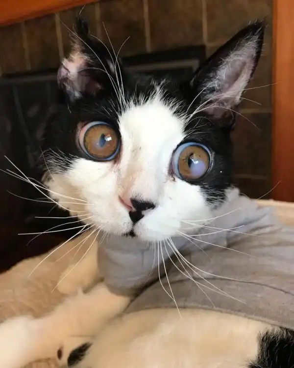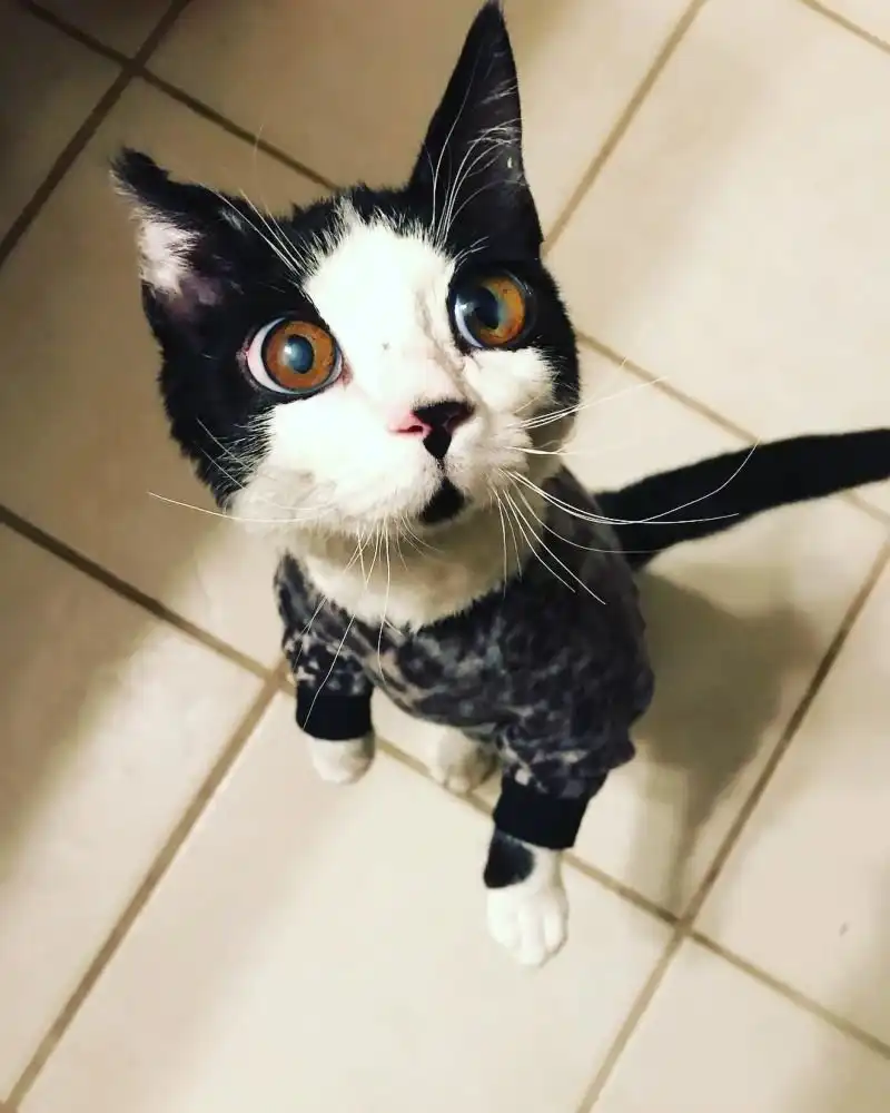 Из-за редкого недуга у кошки огромные глаза и куча нарядов