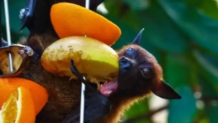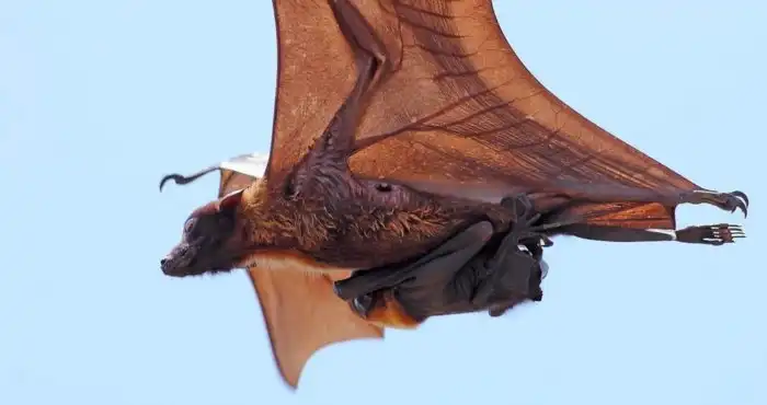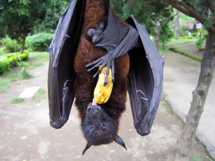 Гигантская летучая лисица — самое крупное млекопитающее, способное к полёту. Его масса может достигать 2 килограммов, что невероятно много по меркам летающей твари. В свою очередь, размах крыльев доходит до 1,5 метров. Мордашка животины напоминает лисью. Не сложно догадаться откуда пошло название рода. В отличие от летучих мышей, крыланы обделены эхолокацией. В поисках пищи они ориентируются исключительно на обоняние и зрение. Кстати, с летучими мышами у них весьма косвенное родство.