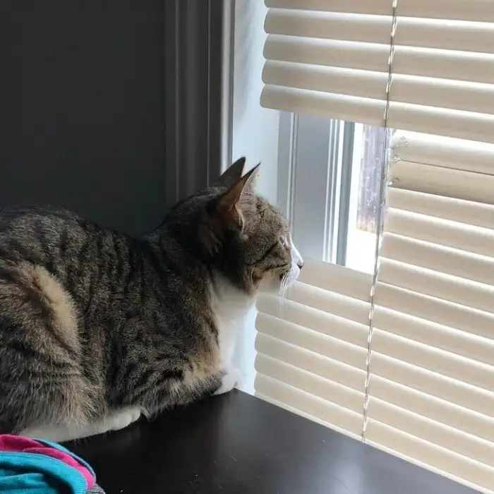 8. «Моя кошка отломила кусок жалюзи, чтобы беспрепятственно смотреть в окно»