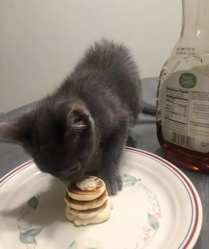 4. Кормят кота человеческой пищей, потому что он очень мило это ест