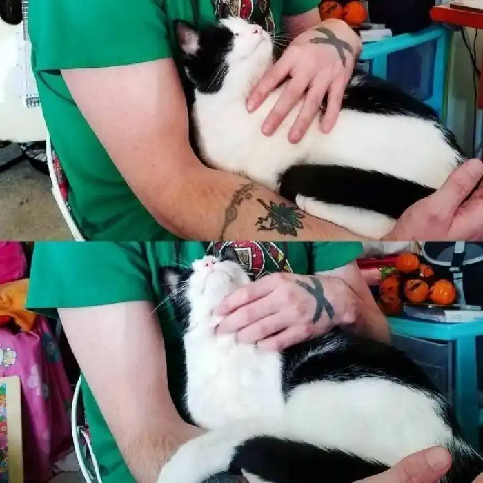 11. Используют кота как подушку, но не опираясь по-настоящему, чтобы его не придавить