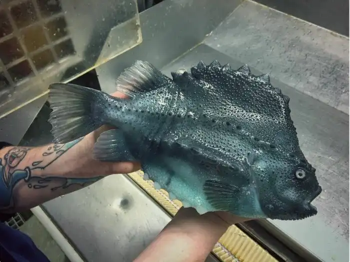 Спутать нашу гостью с другими представителями морской фауны сложно, так как внешность рыбы-воробья весьма необычна. Круглое тело, будто распухшее после знатной попойки, покрыто жёсткими шипами-наростами.