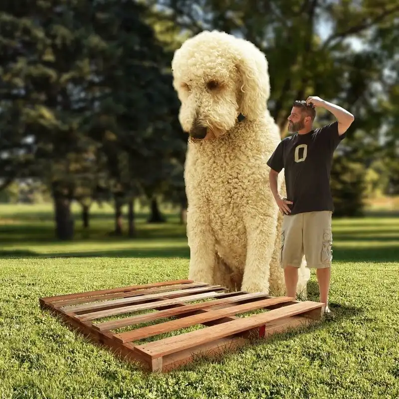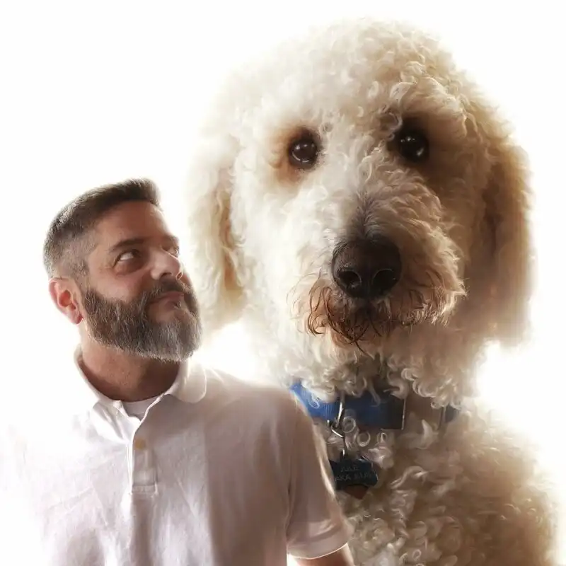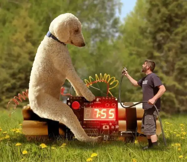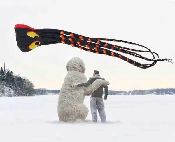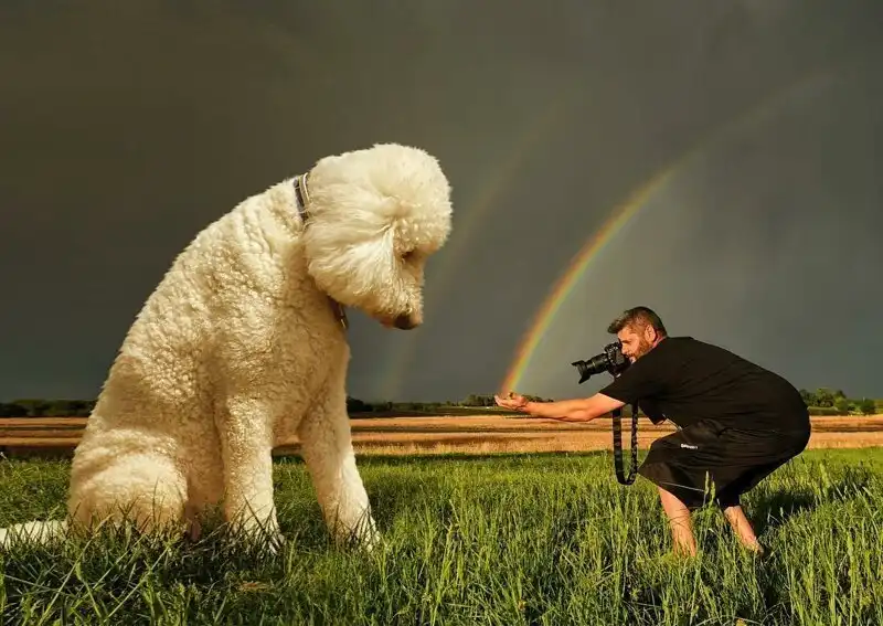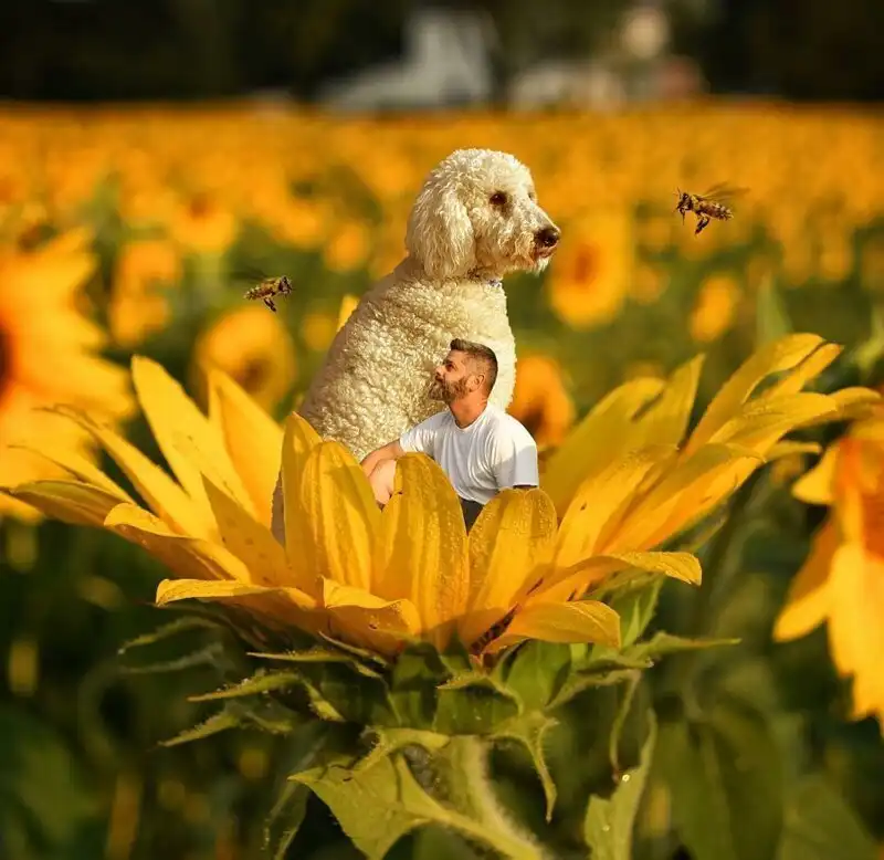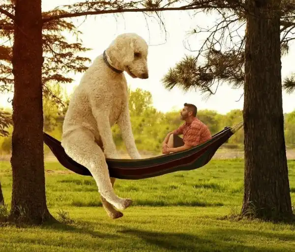 Когда фотограф Кристофер Кляйн переехал из Вирджинии в Миннесоту, поначалу ему было очень одиноко. Но потом подруга подарила ему щенка голдендуделя - помесь пуделя и золотистого ретривера. Джуджи стал для Криса не только лучшим другом, но и источником вдохновения - фотограф создал целый фотопроект, с помощью фотошопа увеличив Джуджи до гигантских размеров и снимая его в разных ситуациях. "Джуджи помог мне увидеть мир по-новому", - признается Крис.