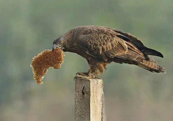 Чем же осоед питается? Нет идей? Что, ни у кого? Даю подсказку: посмотрите на его имя. Ну, итак? Осами! Бинго! Если точнее, то любыми жужжащими, кусачими насекомыми, а особенно – их личинками, которые этот фонвизинский товарищ с говорящей фамилией выковыривает из ульев и подземных гнезд – оттого по земле и ходит. У взрослых предварительно вырывает жало, а их детьми кормит своих детей – это ж сплошные протеины и белок! Иногда (когда ну вот совсем жрать нечего) осоед вспоминает, что «ну я же, типа, хищник, да?» и может подзакусить лягушкой, ящеркой или даже мышкой и мелкой птичкой.
