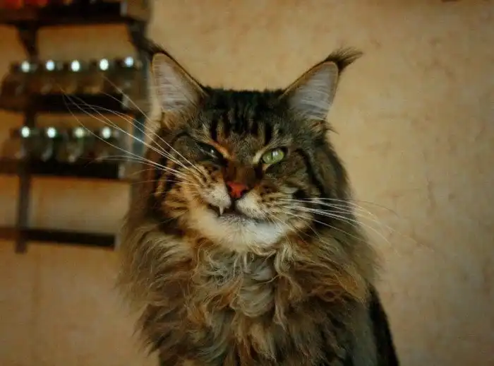 Какие прилагательные возникают в нашей голове, когда речь идёт о мейн-кунах? Величественный, шикарный, огромный, пушистый, красивунный, внушительный, прекрасный, лучший — приблизительно такие. А как насчёт «нелепый», «забавный» или «бестолковый»?