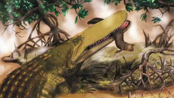 Кроме динозавров древнюю Землю также населяли и крокодилы. Происходило это около 240 миллионов лет назад. Меловой период застал такие виды, как саркозух, дриозавр, дейнозух и некоторые другие. Вероятно, этому способствовали достаточное наличие еды и теплый климат. Из-за этого крокодилы к тому же достигали больших размеров.
