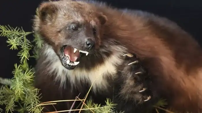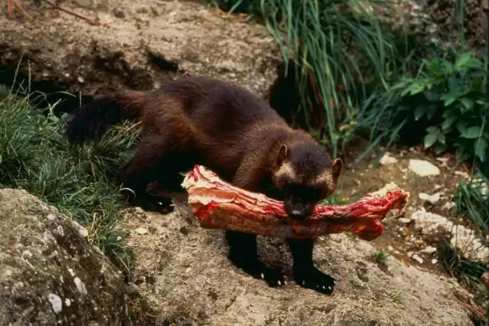 Челюсти у росомахи особо сильные. Она всегда съедает еду вместе с костями, так как запросто их крошит в труху.