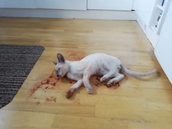 Автор этих фото зашел на свою кухню и чуть не упал в обморок от страха. Он увидел жуткую картину, как будто в этой комнате снимают кровавый триллер. Его любимый кот лежал на полу и двигался, а на полу все было.... нет, вовсе не в крови, а в паприке!