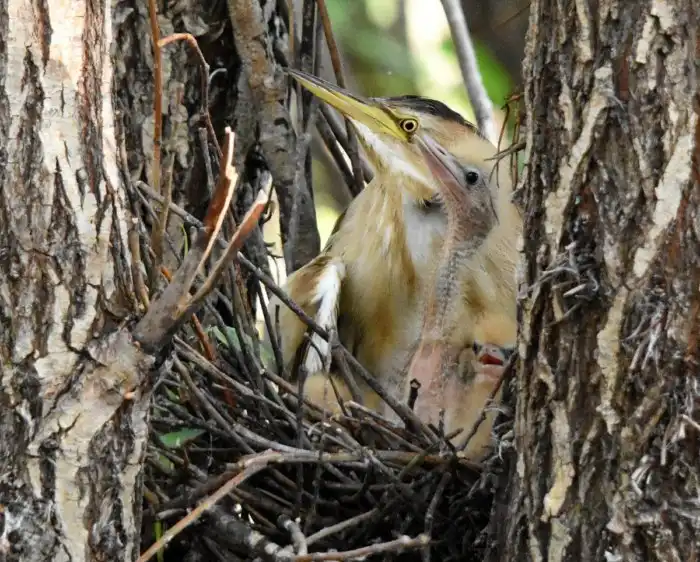 Несмотря на жёсткий естественный отбор, обычно осторожная Выпь становится настоящей дьяволицей, после вылупления птенцов. Если другая хищная птица решит напасть на мать и ее потомство, то она рискует выхватить мощных люлей. Животина настолько лютая, что не пасует даже перед крупными птицами из семейства ястребиных.