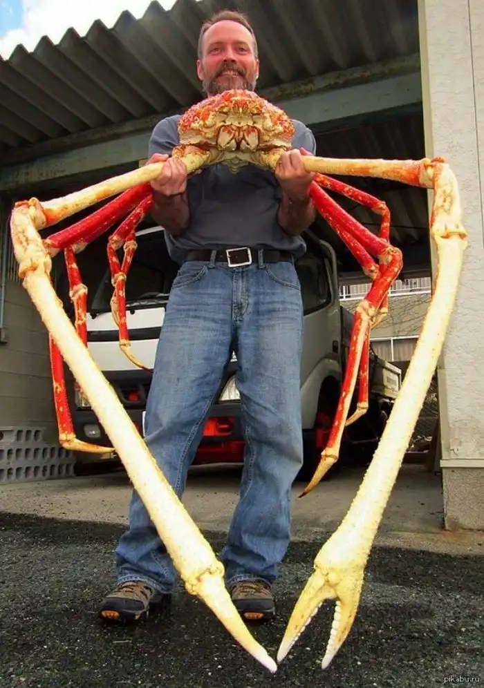 Да, крабы-пауки – одни из самых крупных ныне живущих членистоногих – ну, судите сами: примерно сорок пять сантиметров головогрудь и, хопа… три метра размах тентаклей… Ног, пардон. Все топ-модели бьются в истериках от зависти. Есть сведения и о шестиметровом размахе, и о восьмидесяти сантиметровой головогруди, но нет предела воображению рыбаков. Кроме того, эти крабы – единственные выжившие представители древнего рода Macroheria, поэтому гордо носят неофициальное звание «живых ископаемых».