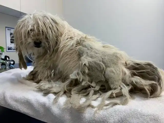 Это случай произошел в Австралии, где собаку по кличке Тайло доставили в приют. Как сказали волонтеры, пес не выходил из дома 7 лет и покрылся колтунами так, что собаку в нем можно было узнать с трудом. Тайло подстригли и то, каким он стал после трудов грумера, удивляет.