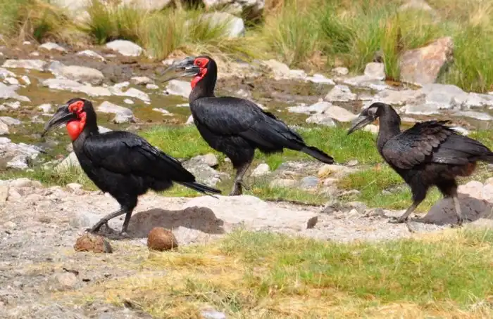 Также кафрский ворон выделяется своими размерами. Эта пичуга — самая большая в своем семействе, ростом порядка 100-110 см и весом до 6,2 кг. Во многом этим и объясняется то, что привычки своих собратьев «носорогов» он нарушает напропалую.
