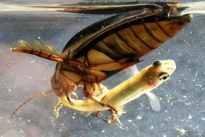Имаго (взрослая особь) достигают 3,5 см, а вот их дитятки вымахивают аж до 6 см. Но вне зависимости от размера и стадии жизненного цикла плавунцы являют собой настоящий ночной кошмар для обитателей вод. Казалось бы, безобидная озёрная букашка. Но насекомое без труда охотится на добычу значительно крупнее себя — других членистоногих, головастиков, рыб. Эти зверюги безбашенные настолько, что жрут даже друг друга.