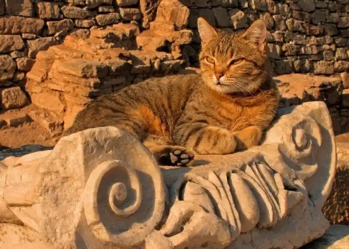 Самым ранним археологическим свидетельством отношений людей с кошками является найденное захоронение человека с котенком на Кипре, датированное 9,5 тыс. лет. Ученые считают, что при всем несовершенстве плавсредств, на которых поселенцы добирались до острова, для кошек на них все-таки нашлось место. Следовательно, завезены кошки были специально.