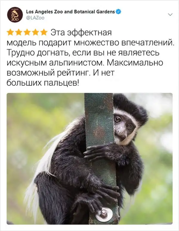 Сотрудники зоопарка в Орегоне решили рассказать о своих животных так, будто они только что купили их в интернет-магазине и теперь пишут отзыв о новом приобретении. В итоге их эксперимент вышел на славу и их примеру последовали другие зоопарки. Так зародился целый флешмоб с хештегом #rateaspecies ("отзывы о животных"), который мгновенно разлетелся по всему твиттеру.