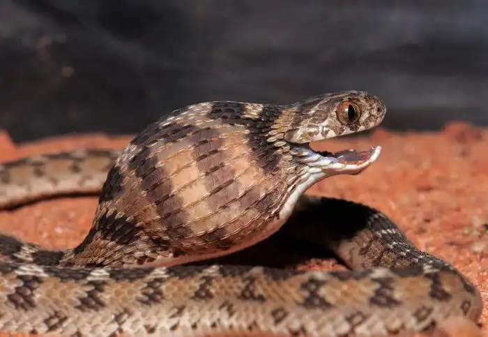 Во-первых, яичная змея почти полностью лишена зубов. В общем-то, они и не нужны, если твоя добыча ещё даже не родилась. Делать кусь при таких обстоятельствах – бессмысленно. Поэтому рептилия выглядит словно бабушка, забывшая вставить свою челюсть.