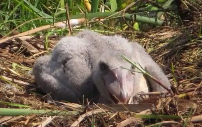 Единственная причина, сближающая китоглавов друг с другом — любовь. Мамка с папкой выращивают потомство вместе. Самка откладывает 3 яйца. В течение месяца самка будет оберегать детишек: ночью греть, а днём поливать водичкой из клюва. Нет, дама не играет в садовода-огородника. Так заботливая мамаша оберегает кладку от перегрева, ведь носить воду в таком огромном клюве удобно!