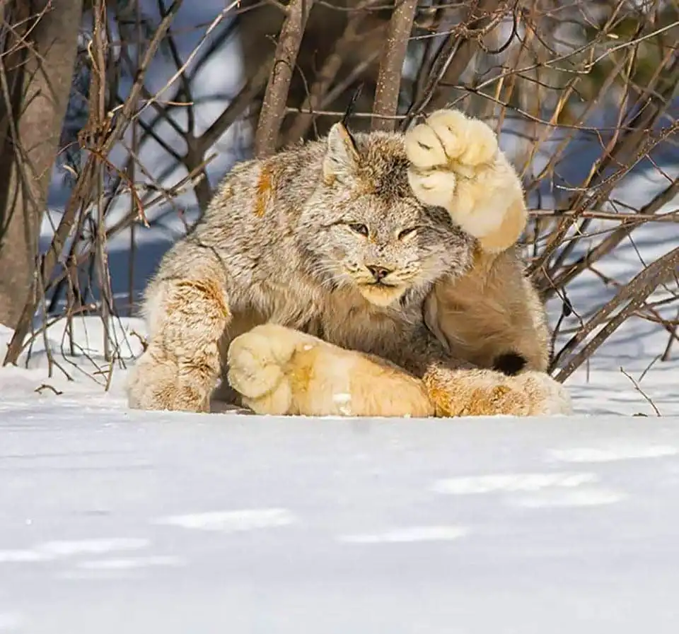 Мир полон удивительных животных. Канадская рысь - точно одно из них: эти кошки вдвое меньше обычных рысей, зато гораздо мягче и пушистее. А их лапы просто невероятно огромны и умилительны, хоть и выглядят неестественными относительно тела. Конечно, поиграть с такой кошечкой вряд ли удастся - это дикий хищник, способный убить человека. Но вот посмотреть на фотографиях - пожалуйста.