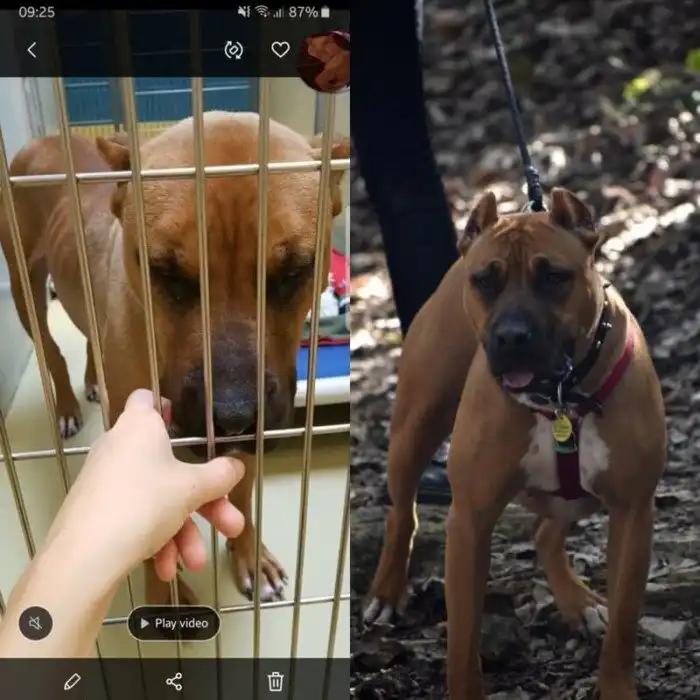 8. Пока этого пса не спасли, он жил в сарае для разведения собак