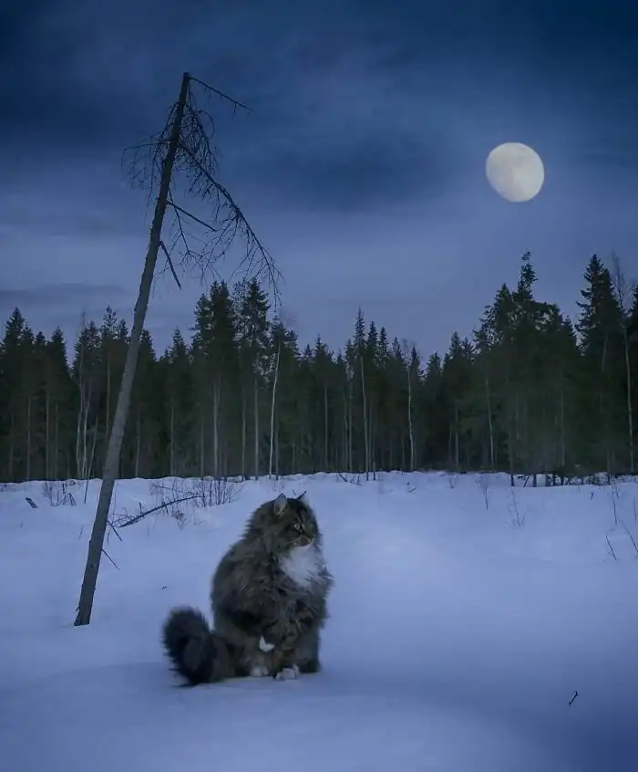 Фотограф Риикка Хедман (Riikka Hedman) живет со своими пушистыми красавчиками в Северной Финляндии. Главная звезда инстаграма девушки - ее 6-летний кот по кличке Сампи, который фигурирует на большинстве снимков, и другие - Хискиас Хяэппонен, Элмери и Нелли. К сожалению, не так давно одна из кошек, Нелли, скончалась, но снимки до сих пор хранят память о ней.