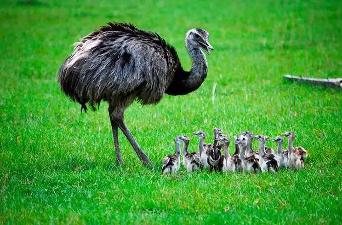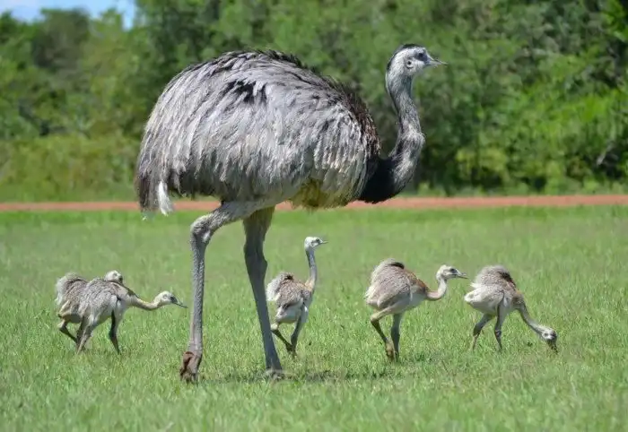 Даже в деле, где фантазия просто необходима, нанду практически полностью скопировали обитателя Африки. Мы говорим про размножение. Птахи собираются в гаремы. Так как ничего выдающегося у самцов нет, они привлекают дам танцами и песнями. Сделав дело, девчонки идут гулять смело. А вот будущие папаши после бурной ночки, в отличие от самок, превращаются в хозяюшек и обустраивают гнездо.