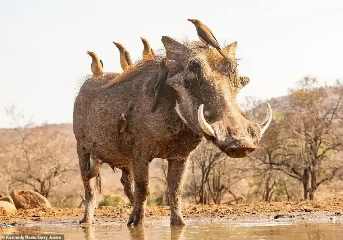 "Было здорово запечатлеть такое удивительное поведение и бородавочника, и птиц, которые восседали на его спине так расслабленно и спокойно," - говорит фотограф.