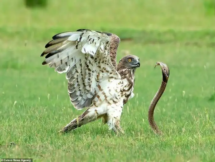 Впечатляющие кадры охоты змееяда на индийскую кобру