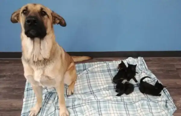 Со слов работников приюта, куда обратилась женщина, на тот момент котятам было около пяти недель, и без собаки они бы умерли.