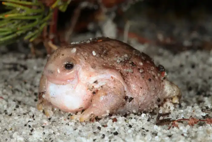 Но даже несмотря на всё вышеперечисленное, лягушка черепаха остаётся земноводным. Да, живёт жабка в пустынях, но увидеть её можно только в местах, где собирается влага. После дождичка в четверг, австралийцы вместо грибов находят под корягами и камнями этих чудиков, выбравшихся на поверхность.