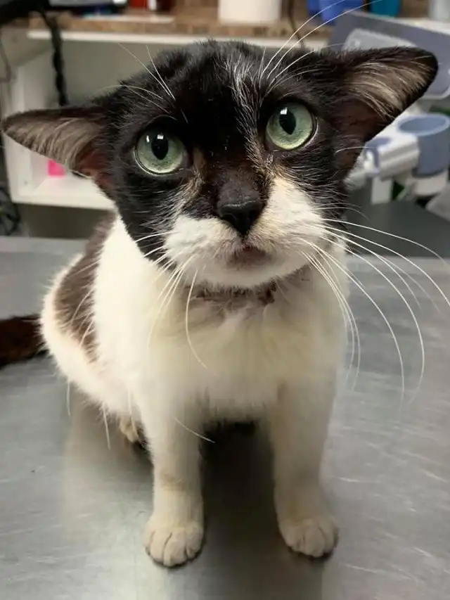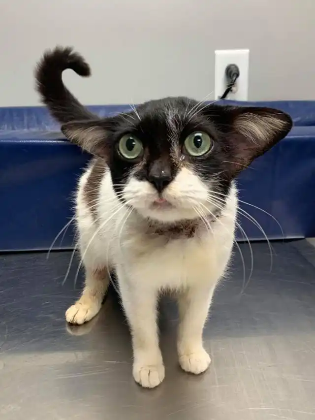 Эта безымянная кошка с большими опущенными ушами стала звездой социальных сетей, после того как помощник ветеринара Джейн Авилес опубликовала ее в своем Твиттере. Пушистое создание оказалось бездомным, а в клинику попала из-за проблем со здоровьем.
