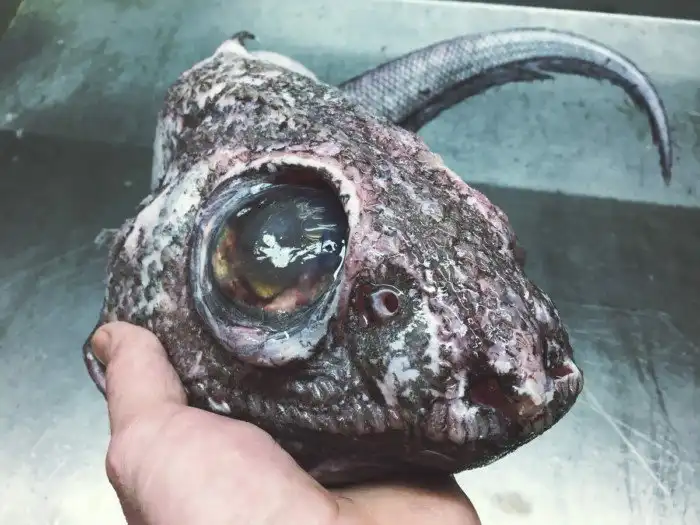 К слову, существует множество глубоководных рыб со схожим строением, но живущие на меньших глубинах. Вот, например, макрурус (~2 км глубины), фото из Инстаграма знаменитого и крутого рыболова Романа Федорцова